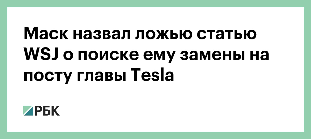 WSJ написала, что совет директоров Tesla ищет замену Маску на посту гендиректора. В компании это опровергли. Маск счел нарушением этики отсутствие в статье опровержения от Tesla. «WSJ — дискредитация журналистики», — заключил он