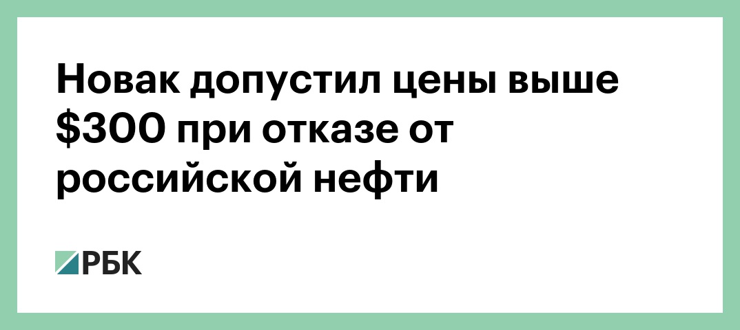 «Абсолютно очевидно, что отказ от российской нефти приведет к катастрофическим последствиям для мирового рынка. Всплеск цен будет непредсказуемым — более $300 за баррель, если не больше», — сказал Новак.