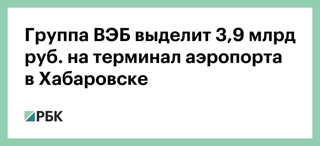 Внешэкономбанк (ВЭБ) и Фонд развития Дальнего Востока и Байкальского региона (ФРДВ, входит в группу ВЭБ) выделят 3,9 млрд руб. на строительство нового пассажирского терминала в аэропорту Хабаровска («Новый»). Кредит самого ВЭБа составит 1,9 млрд руб., ФРДВ — 2 млрд руб. Об этом РБК рассказали представители фонда и банка.