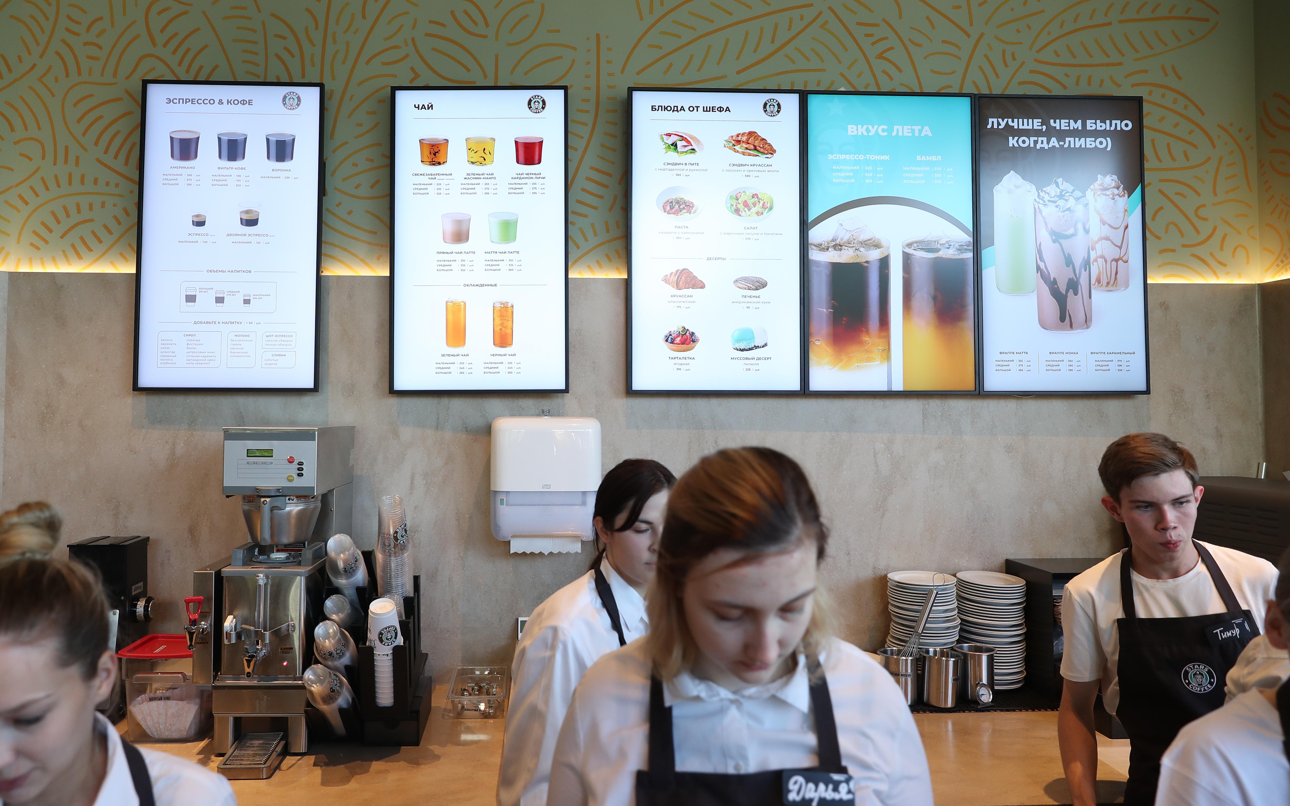 Как заявили новые владельцы сети, присутствовавшие на открытии, — ресторатор Антон Пинский и рэпер Тимур Юнусов (Тимати) — раньше еду привозили в замороженном виде, а теперь «будут доготавливать на месте». Они отметили, что в меню вместо фраппучино появится фраппучито, вкус его будет другим.