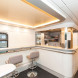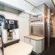 «В обеденном зале помимо столиков на четырех человек появилась стойка с поворотными креслами, дополнительная кофе-машина, полки для личных вещей и стеллаж для багажа», — перечисляют РЖД.