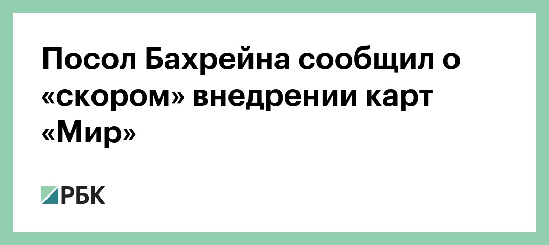 «В Бахрейне мы скоро внедрим в банковские услуги российскую платежную систему «Мир», что позволит туристам из вашей страны комфортно и безопасно отдыхать у нас», — сказал он (цитата по ТАСС).
