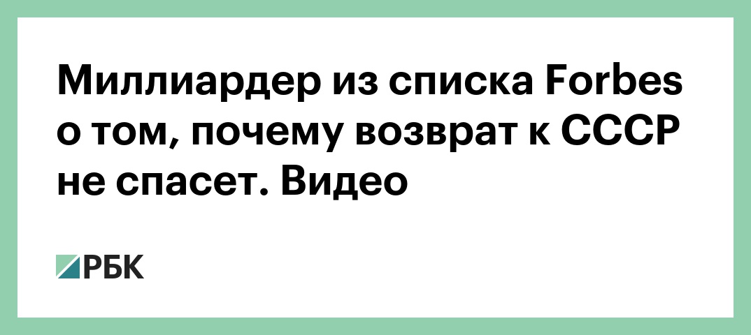 Миллиардер из списка Forbes о том, почему возврат к СССР не спасет. Видео