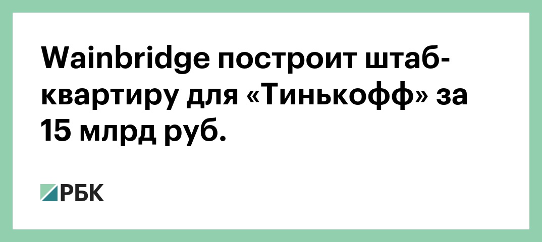 Wainbridge построит штаб-квартиру для «Тинькофф» за 15 млрд руб.