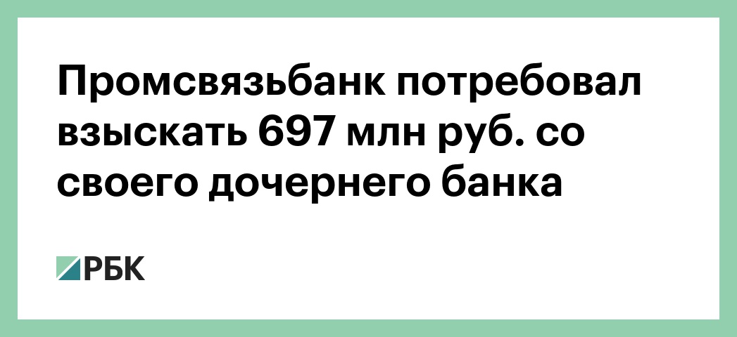 Промсвязьбанк потребовал взыскать 697 млн руб. со своего дочернего банка