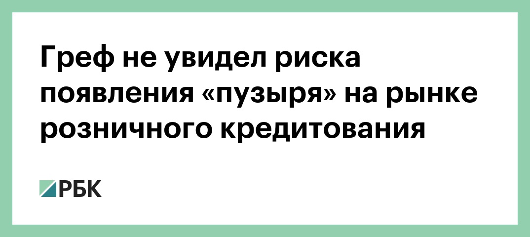 «По потребительским кредитам мы тоже сделали сравнение — и с нами самими образца 2008 года, и с развивающимися странами — пока мы не видим даже признаков возможности возникновения «пузыря» на рынке потребительского кредитования», — сказал Греф.