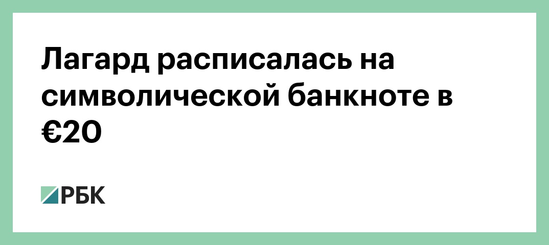 Председатель Европейского центрального банка (ЕЦБ) Кристин Лагард на торжественной церемонии во Франкфурте-на-Майне поставила свою подпись на символическом изображении банкноты достоинством €20. Как отмечает Deutsche Welle, первые купюры с изображением ее подписи появятся в обращении во второй половине 2020 года.