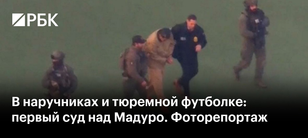 Через два дня после похищения американскими военными президент Венесуэлы Николас Мадуро и его супруга Силия Флорес предстали перед судом в Нью-Йорке. Против супругов выдвинули обвинения в «наркотерроризме». Как прошел первый суд над президентом — в фотогалерее РБК