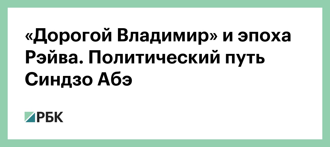 «Дорогой Владимир» и эпоха Рэйва. Политический путь Синдзо Абэ