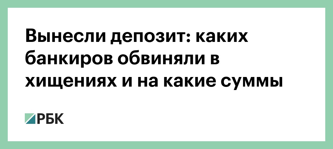 Бизнес13 сентября 2019, 13:49Вынесли депозит: каких банкиров обвиняли в хищениях и на какие суммыВходит в сюжетыВ этой статьеАндрей Любимов / РБКЕвгений Стецко / Ведомости / ТАССДмитрий Азаров / «Коммерсантъ»РИА Новостиtadviser.ruАлександр Коряков / «Коммерсантъ»РБК в MAXНа связи с проверенными новостямиЧитайте РБК в MAХ! Самые важные новости, только проверенная информация. Зеленский рассказал о требовании США уйти из Донбасса ради гарантий МВД предложило сделать платным доступ банков к базам полиции Иран разрешил России и еще четырем странам проход по Ормузскому проливу WSJ узнала, что США убрали из целей двух чиновников Ирана для переговоров Bloomberg: США изучают, какие последствия будут у скачка цен на нефть до $200 На Чукотке проведут серию аукционов на месторождения россыпного золота АвторыТегиЮлия Сапроновамультимедиа