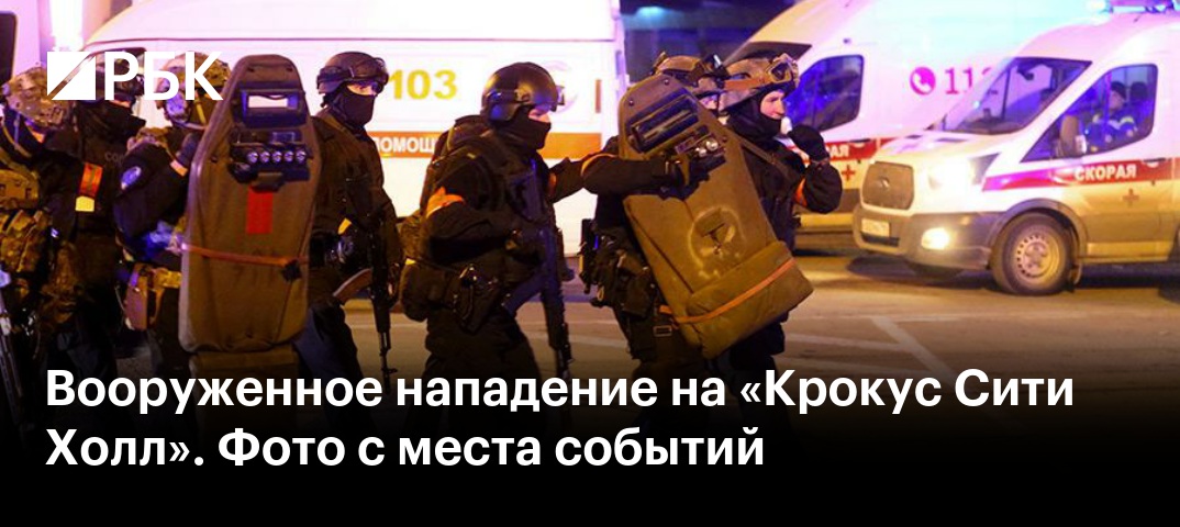 К Crocus City Hall, где произошло нападение террористов, прибывают десятки машин скорой помощи. Число пострадавших превысило 100 человек.