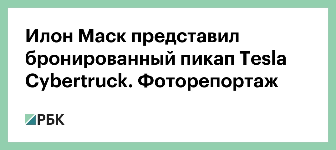 Общество22 ноября 2019, 11:42Илон Маск представил бронированный пикап Tesla Cybertruck. ФоторепортажВходит в сюжетыВ этой статьеRingo H.W. Chiu / APRingo H.W. Chiu / APRingo H.W. Chiu / APtesla.comtesla.comtesla.comtesla.comtesla.comРБК в MAXНа связи с проверенными новостямиЧитайте РБК в MAХ! Самые важные новости, только проверенная информация. Axios узнал об отношении Ирана к попытке переговоров Трампа как к уловке Минцифры направило правительству проект о мерах поддержки «Почты России» WSJ раскрыла требования Ирана для переговоров Арагчи призвал Россию и Китай решительно осудить действия США Рекрутеры рассказали, что компании чаще отказывают соискателям с тату NYT узнала, что США отправили Ирану план по прекращению войны ТегимультимедиаИлон МаскTesla