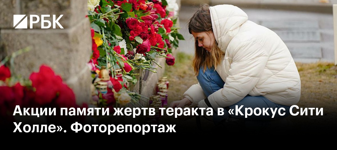Фотографии с акций памяти жертв теракта в «Крокус Сити Холле»