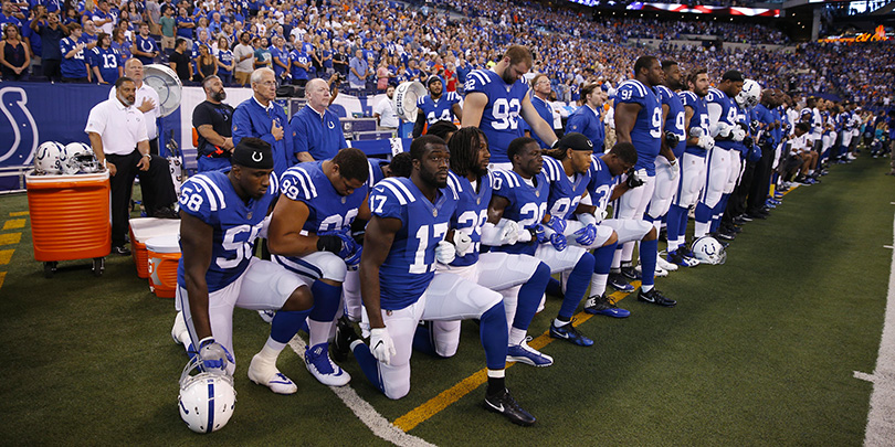 Протесты на играх по американскому футболу. Фоторепортаж