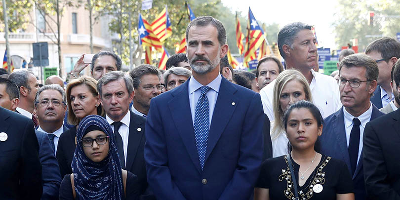 Король Испании вышел на многотысячный марш против террора в Барселоне