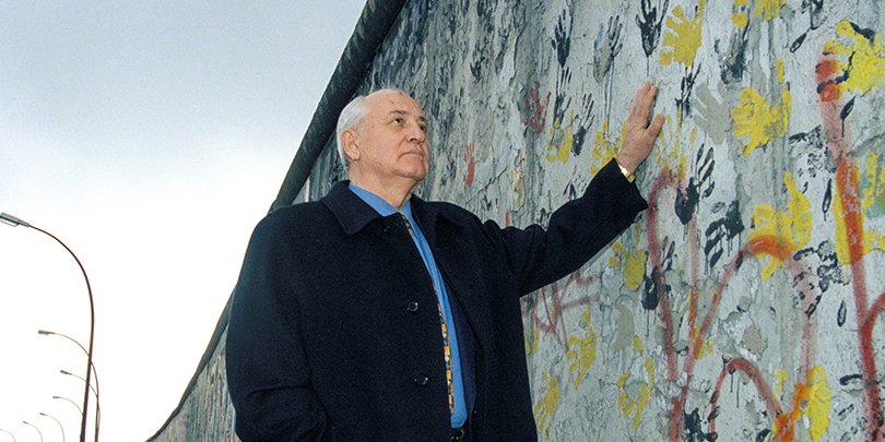 Горбачев активно проводил встречи с западными руководителями. В результате переговоров с президентом США Джорджем Бушем-старшим в 1989 году был фактически положен конец холодной войне. Горбачев заявил, что СССР готов не рассматривать Соединенные Штаты Америки как военного противника, за чем последовало аналогичное заявление Белого дома. Незадолго до встречи лидеров США и СССР пала Берлинская стена (физическая граница между ФРГ и ГДР была возведена между Западным и Восточным Берлином в 1961 году, разбита после упрощения режима посещения ФРГ и окончательно снесена в 1990 году. — РБК ). «Встретившись с президентом Бушем на Мальте спустя месяц после падения стены, мы договорились и о взаимном поведении в германском вопросе. И — что символично в этой связи — объявили об официальном прекращении холодной войны», — вспоминал Горбачев. О самой стене он высказывался так: «Это было искусственное образование, прямое детище холодной войны — самой трагической ошибки, которой победившие фашизм нации позволили свершиться после такой войны»