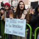 Девушка держит плакат с текстом: «У меня 99 проблем, и сокращение финансирования образования — причина всех из них»
