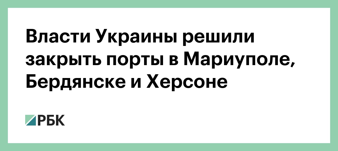 Власти Украины приняли решение о закрытии портов на неподконтрольной Киеву территории — в Мариуполе, Херсоне, Бердянске и Скадовске, говорится в сообщении украинского министерства инфраструктуры.
