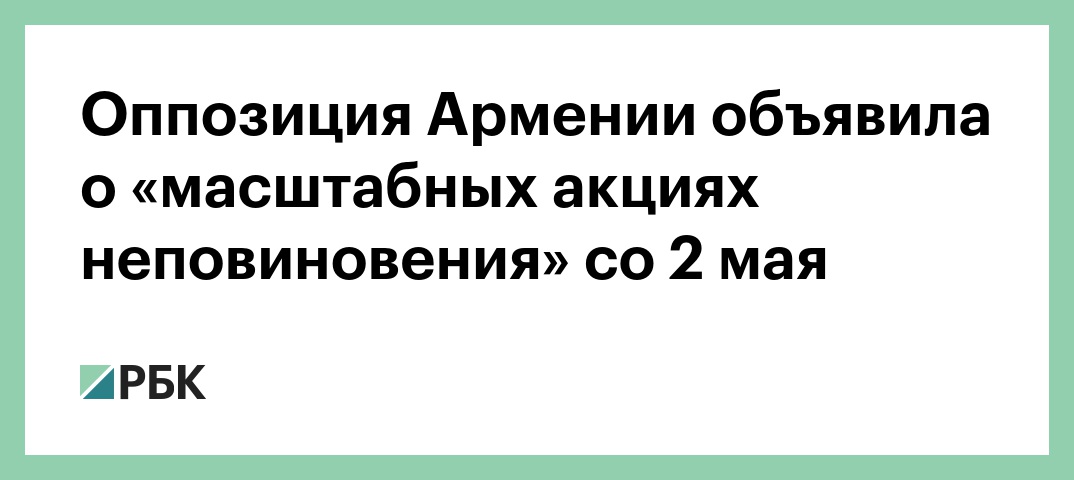 Оппозиция Армении со 2 мая начнет «масштабные акции гражданского неповиновения», заявил вице-спикер парламента, депутат фракции «Армения», лидер Армянской революционной федерации «Дашнакцутюн» (АРФД) Ишхан Сагателян, его слова приводит портал Aysor.