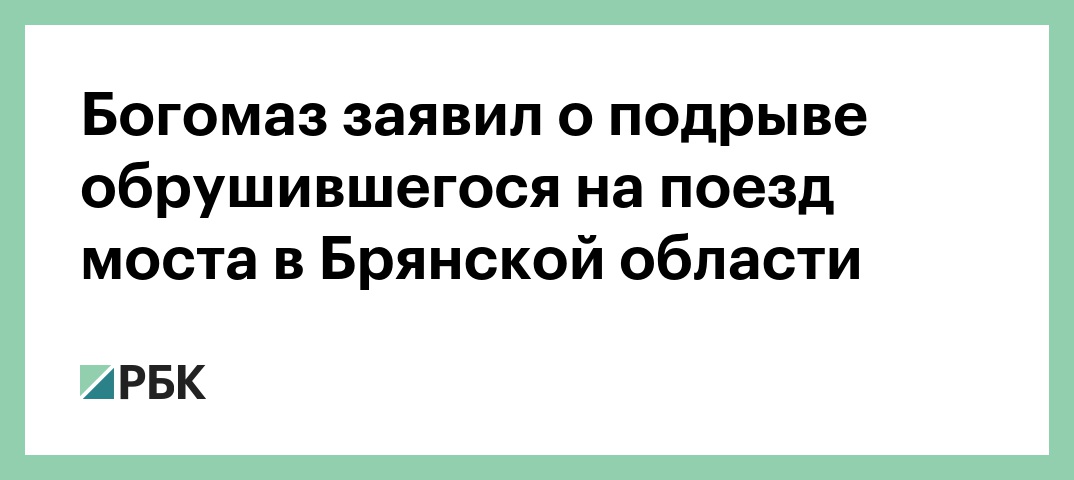 Мост, обрушившийся в ночь на 1 июня на железнодорожные пути в Брянской области, был подорван. Об этом заявил глава региона Александр Богомаз, передает «РИА Новости».