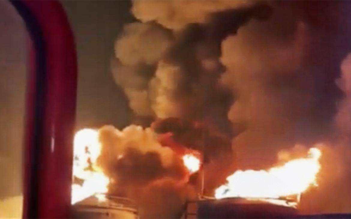 Пожар на заводе в Белгородской области после атаки ВСУ. Видео