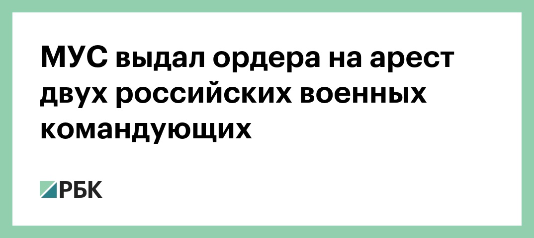 Палата предварительного производства Международного уголовного суда (МУС) в составе председательствующего судьи Розарио Айталы, судей Томоко Аканэ и Серхио Годинеса выдала ордера на арест двух российских командующих: генерал-лейтенанта Сергея Кобылаша (дальняя авиация) и адмирала Виктора Соколова (Черноморский флот), сообщается на сайте МУС.