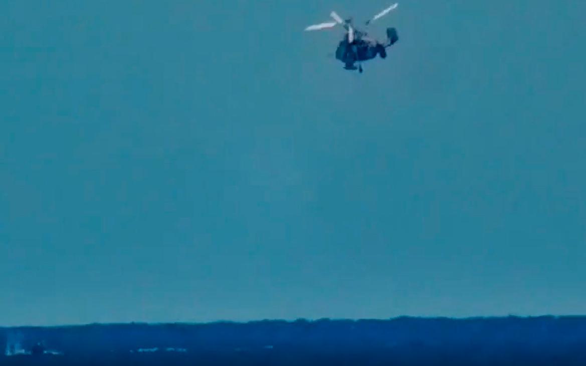 Вертолет уничтожил безэкипажные катера Вооруженных сил Украины, сообщили в Минобороны России.