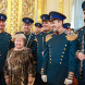 По дороге к месту произнесения присяги в Андреевский зал через Георгиевский и Александровский залы, где собрались многочисленные гости события, Путин подошел к главе НИИ неотложной детской хирургии и травматологии Леониду Рошалю, которому 27 апреля исполнился 91 год, и пожал ему руку, а затем поцеловал 94-летнюю композитора Александру Пахмутову.