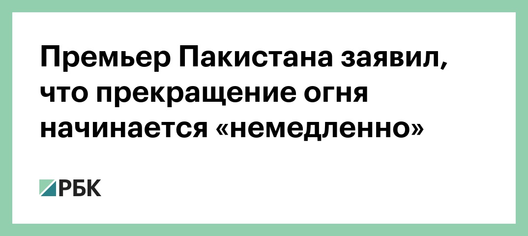 Премьер Пакистана заявил, что прекращение огня начинается «немедленно»