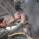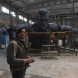 Cкульптор Андрей Коробцов у фрагмента бронзовой фигуры будущего Ржевского мемориала