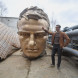 Cкульптор Андрей Коробцов у фрагмента бронзовой фигуры будущего Ржевского мемориала