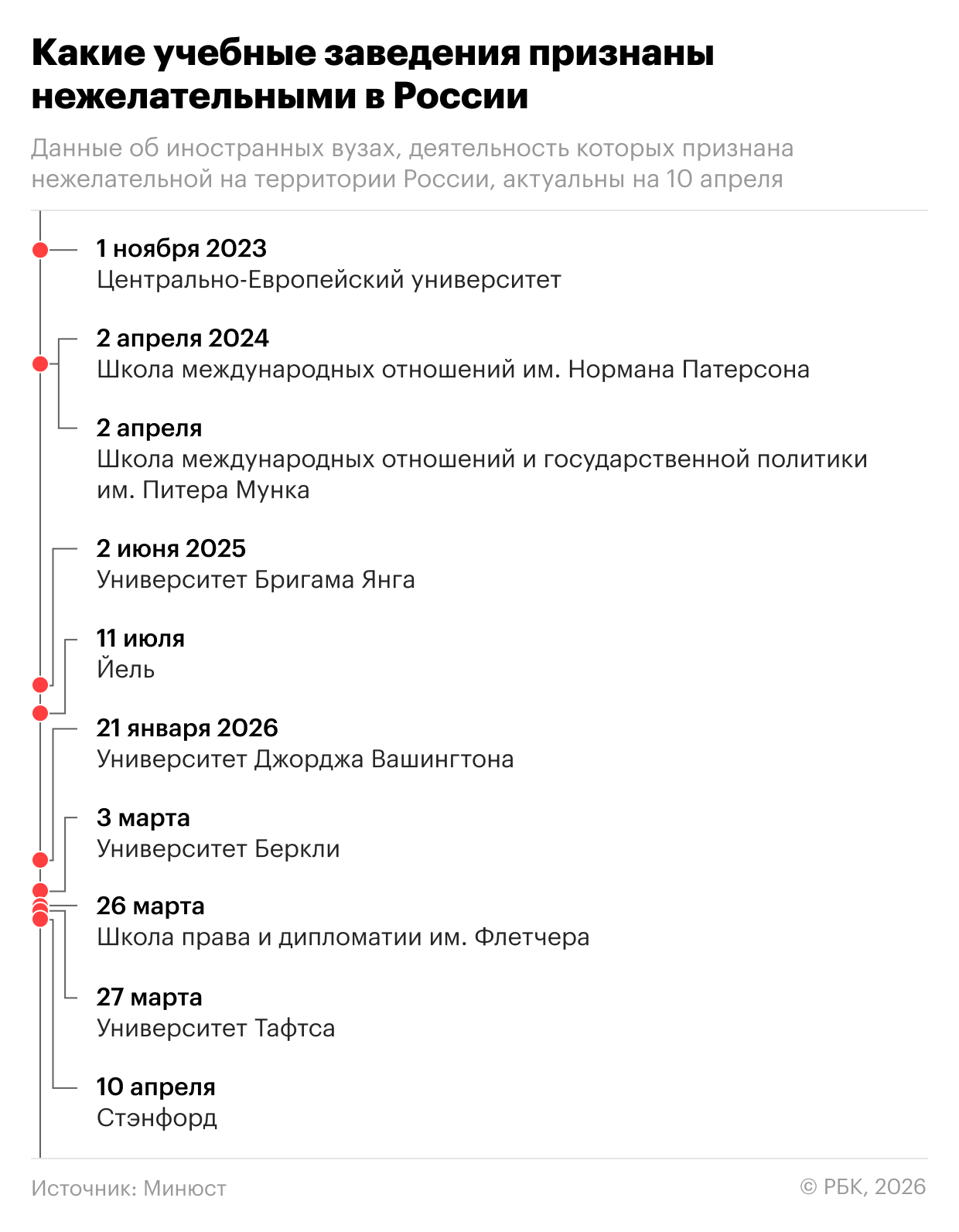 Минюст признал нежелательной организацией Стэнфорд — один из ведущих университетов мира. Какие еще западные вузы включены в реестр — в материале РБК