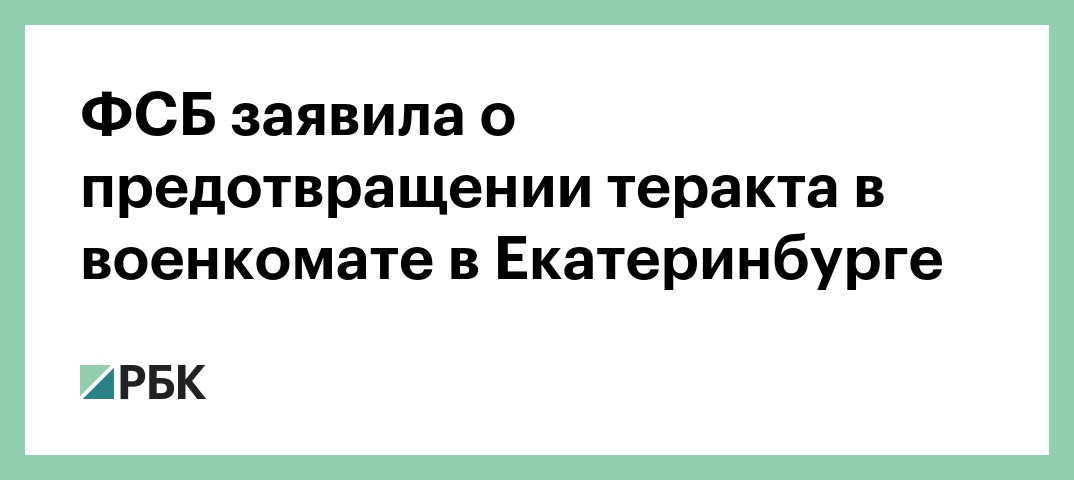 «В результате совместной спецоперации УФСБ России по Свердловской области и органов военной контрразведки при подготовке к реализации (...) задержан 47-летний гражданин РФ, намеревавшийся совершить в отношении административного объекта в Кировском районе Екатеринбурга террористический акт», — говорится в сообщении.