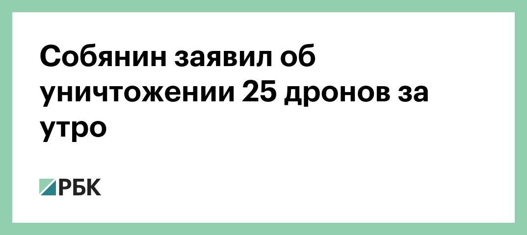 В 8:59 мэр написал, что восемь дронов, летевших на Москву, уничтожено в городских округах Раменское, Домодедово и Коломна, в 9:10 Собянин рассказал о еще пяти беспилотниках в Раменском и Домодедово. В 9:22 мэр заявил, что количество сбитых дронов выросло до 22.
