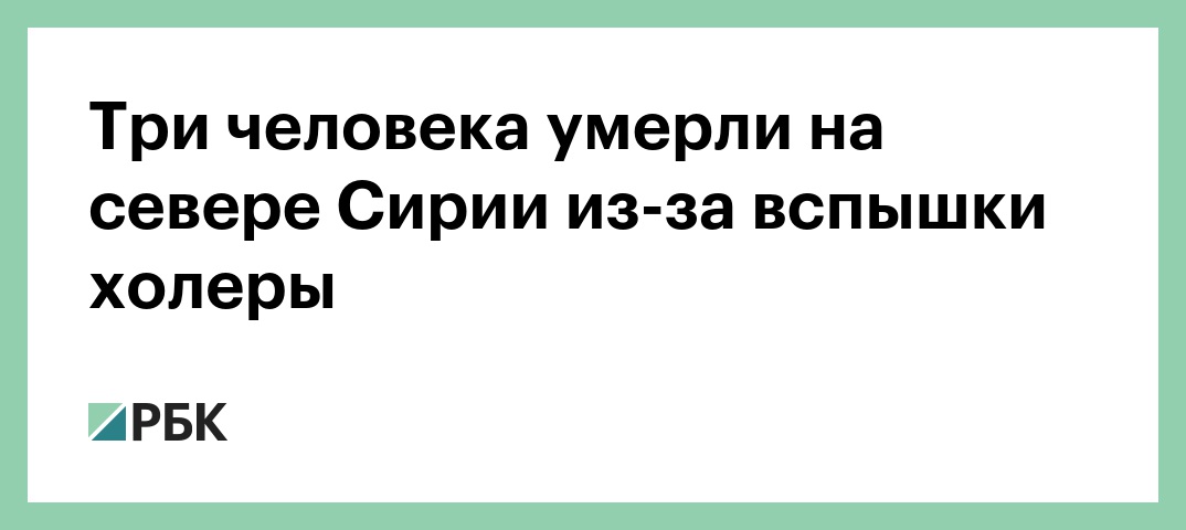 В нескольких районах на севере Сирии произошла вспышка холеры. Три человека уже погибли в курдской автономии, еще как минимум 30 заболевших зарегистрировали в соседних провинциях, сообщает Rudaw.