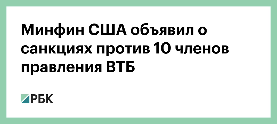 Минфин США объявил о санкциях против 10 членов правления ВТБ