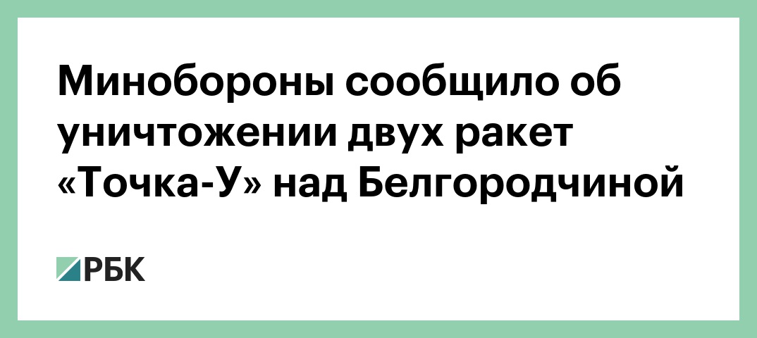 Минобороны сообщило об уничтожении двух ракет «Точка-У» над Белгородчиной