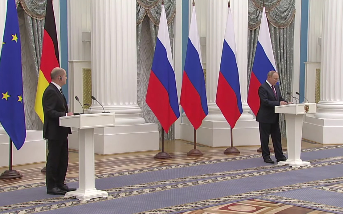 В Кремле завершились переговоры между президентом России Владимиром Путиным и канцлером ФРГ Олафом Шольцем о стратегии безопасности в Европе. После встречи главы стран выступили на пресс-конференции перед журналистами