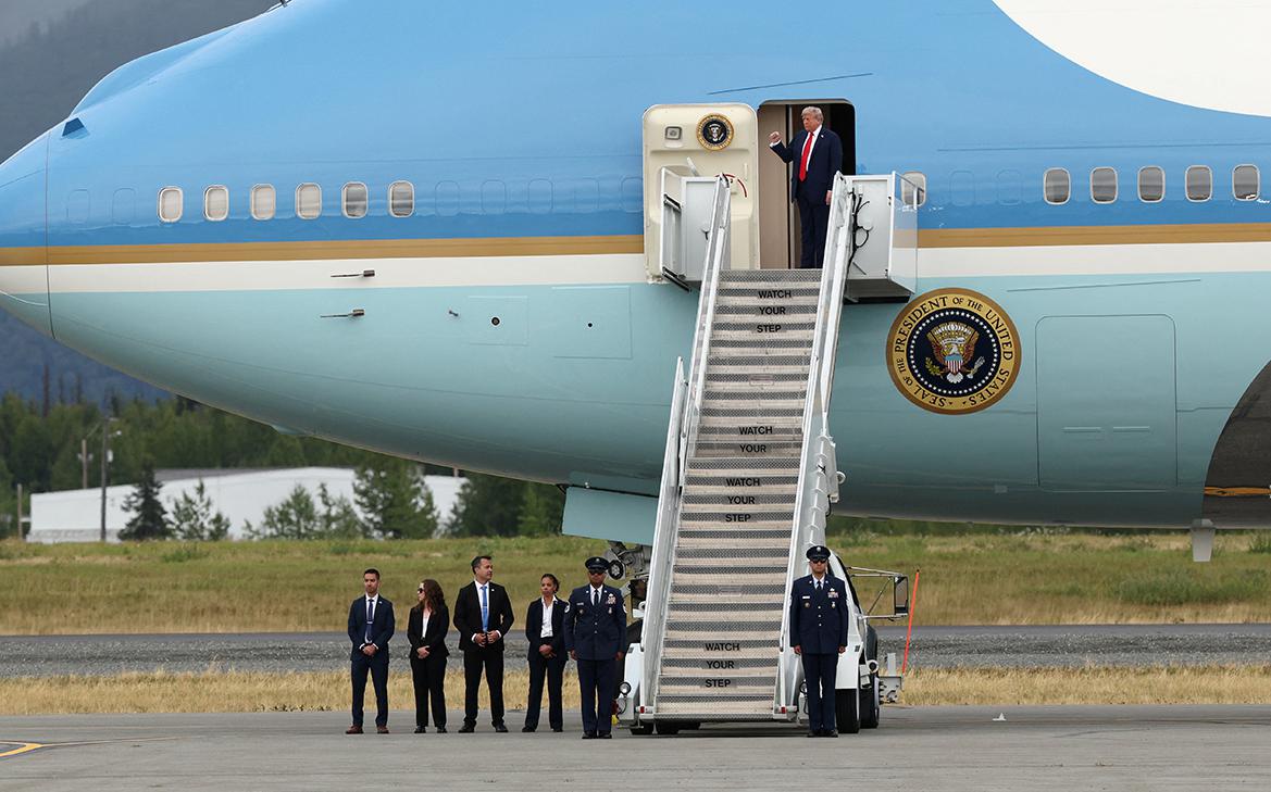 Президенты России и США Владимир Путин и Дональд Трамп вышли из самолетов на Аляске.