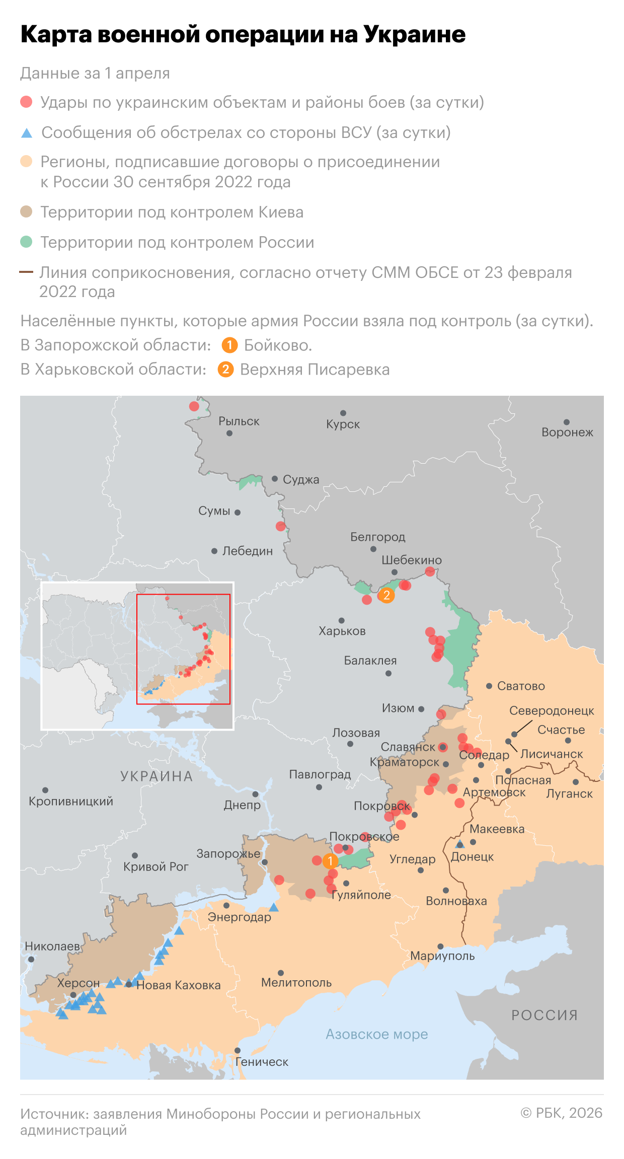 Россия начала военную операцию на Украине 24 февраля 2022 года. Обстановка в зоне военных действий — в инфографике РБК