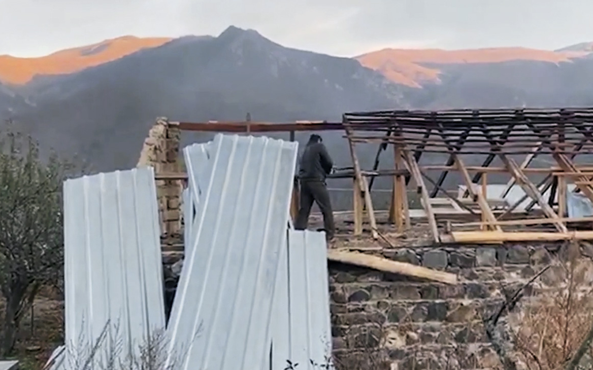 Жители покидают Кельбаджарский район, который с 15 ноября по соглашению о перемирии переходит Азербайджану. Там стоит дым от сожженных домов, на выезде пробки. Кадры из Карабаха накануне прислал корреспондент РБК
