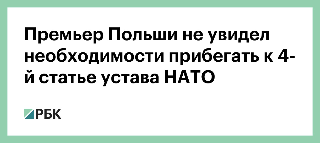 «Большая часть собранных нами данных указывает на то, что на этот раз нет необходимости активировать ст. 4 устава НАТО, но этот механизм останется в нашем распоряжении», — цитирует слова Моравецкого PAP.