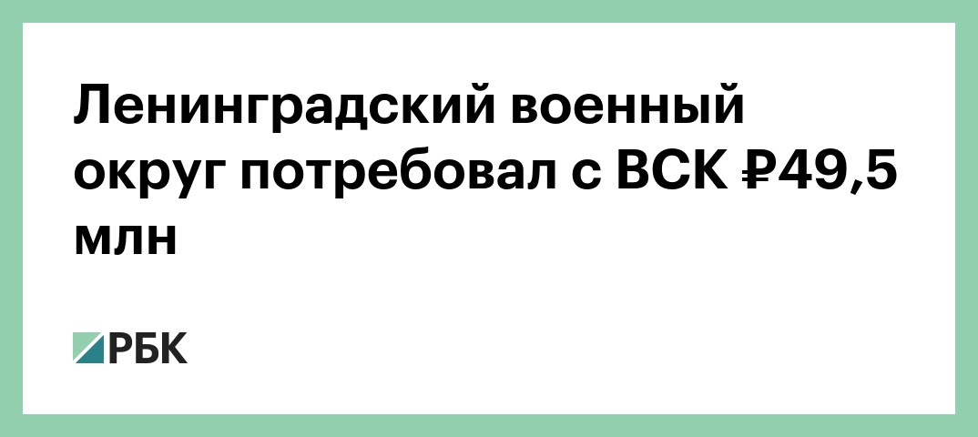 Ленинградский военный округ потребовал с ВСК ₽49,5 млн