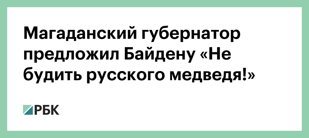 Магаданский губернатор предложил Байдену «Не будить русского медведя!»