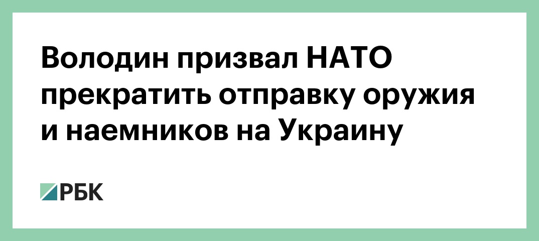 Володин призвал НАТО прекратить отправку оружия и наемников на Украину