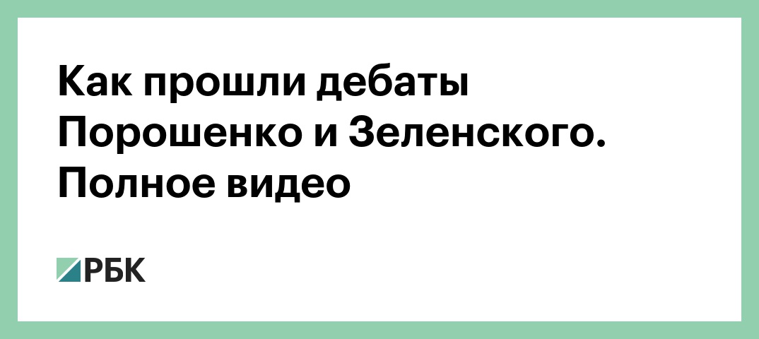 Выборы на Украине19 апреля 2019, 18:45Как прошли дебаты Порошенко и Зеленского. Полное видеоВходит в сюжетВыборы на УкраинеВ этой статьеРБК в MAXНа связи с проверенными новостямиЧитайте РБК в MAХ! Самые важные новости, только проверенная информация. Зеленский рассказал о требовании США уйти из Донбасса ради гарантий МВД предложило сделать платным доступ банков к базам полиции Иран разрешил России и еще четырем странам проход по Ормузскому проливу WSJ узнала, что США убрали из целей двух чиновников Ирана для переговоров Bloomberg: США изучают, какие последствия будут у скачка цен на нефть до $200 На Чукотке проведут серию аукционов на месторождения россыпного золота ТегиУкраинаВыборытрансляцияПетр ПорошенкоВладимир Зеленский