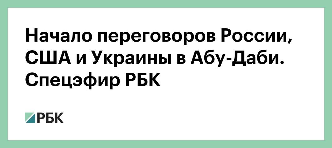 В Абу-Даби 23 января начинаются переговоры представителей России, США и Украины. По данным Sky News, они уже стартовали, а украинское издание «Страна» пишет, что прибывшие члены делегаций уже могли начать неформальные обсуждения. Главное о трехсторонней встрече — в специальном эфире телеканала РБК.