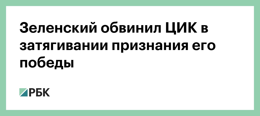 «Победа есть, а полномочий нет. ЦИК затягивает официальное оглашение результатов, чтобы Верховная рада могла затянуть назначение даты инаугурации. Чтобы инаугурация была после 27 мая. Зачем? Чтобы у президента Зеленского не было возможности думать о роспуске Верховной рады. Мне кажется, что это несправедливо. Президент, у которого уровень доверия 73% имеет право думать про это. И имеет право иметь такую возможность», — сказал Зеленский (видеобращение избранного президента опубликовано на его странице в сети Facebook).