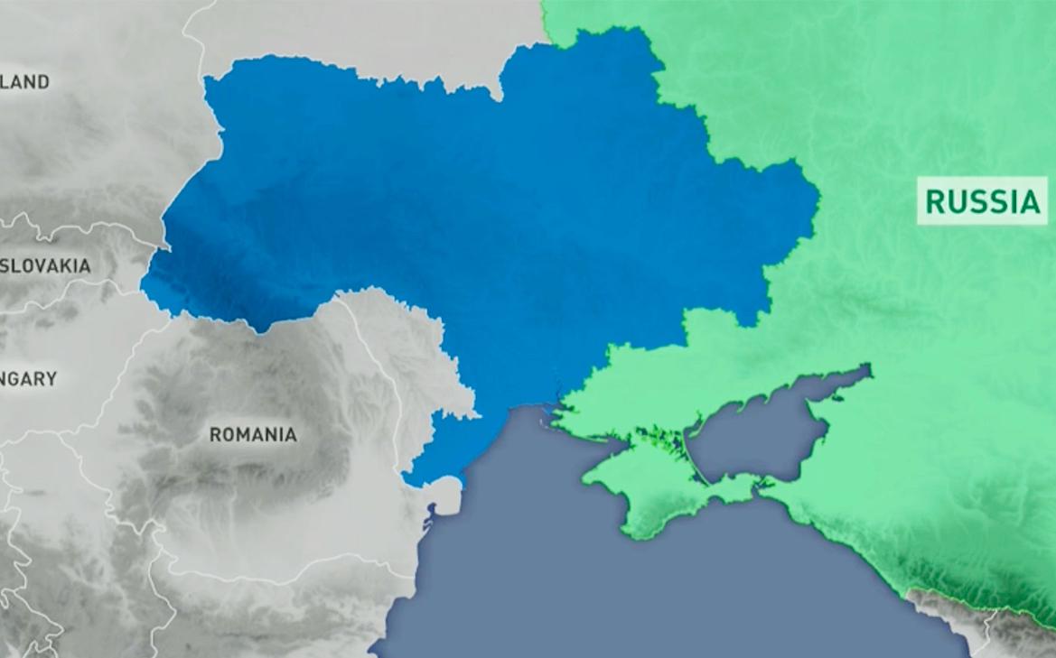 Видео появилось в англоязычном телеграм-канале Медведева. На представленных кадрах буферная зона — ее обозначили красным цветом — занимает большую часть Украины, за исключением небольшой площади на западе. Украинская территория обозначена синим цветом, российская — зеленым.