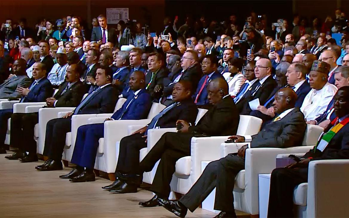 В Санкт-Петербурге прошло пленарное заседание форума Россия — Африка, в нем участвовали президент Владимир Путин, председатель Африканского союза и президент Коморских Островов Азали Ассумани, председатель совета директоров Африканского экспортно-импортного банка Бенедикт Орама, президент Нового банка развития Дилма Руссефф и патриарх Московский и всея Руси Кирилл.